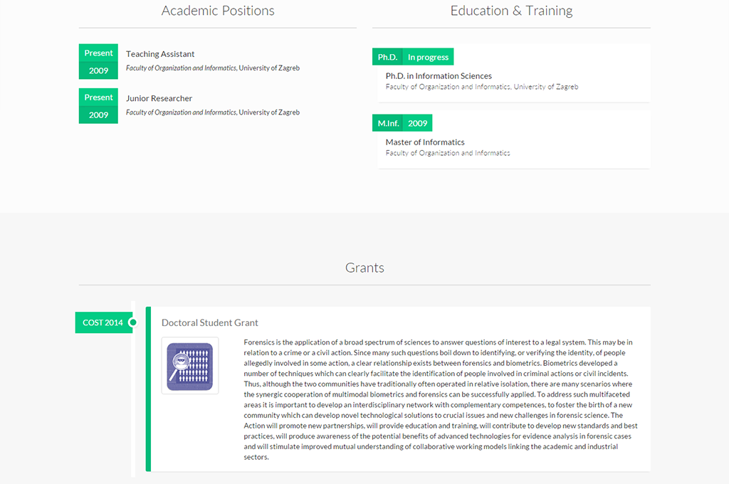 Petra Grd je viša asistentica na Fakultetu organizacije i informatike. Diplomirala je na Fakultetu organizacije i informatike u Varaždinu 2009. godine, gdje je 2015. godine i doktorirala. Od 2009. godine radi na Fakultetu organizacije i informatike kao znanstvena novakinja na projektima i kao asistentica na više kolegija. Istraživački interes vezan je uz biometriju, točnije uz biometriju lica i starenje lica, a osim istraživanja i nastave, bavi se i web dizajnom te je suradnik u Aritos IT j.d.o.o. Objavila je više znanstvenih radova te sudjelovala na konferencijama i ljetnim školama u zemlji i inozemstvu.
